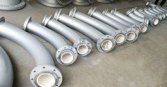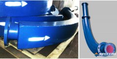 1、管道彎頭的防磨結構設計 (1)活肘板的防磨彎頭某種特殊結構的防磨彎頭。考慮到彎頭的磨損一般發生在背部,該彎頭在背部設計了可拆卸的肘板。當肘板磨穿后,不必將整個彎頭
