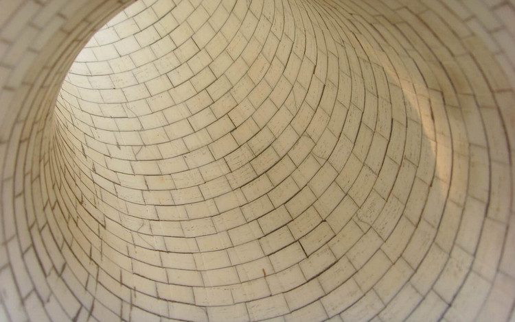 該耐磨陶瓷鋼管由鋼管、粘膠及耐磨陶瓷三層組成,鋼件采用20#整體熱彎成型(區(qū)別于離心澆鑄管道焊接或卷板成型),陶瓷采用與清華聯(lián)合研發(fā)的350度耐溫?zé)o機(jī)粘膠粘接在鋼件內(nèi)壁,工藝上由傳統(tǒng)直接粘貼改為采用每圈錯(cuò)縫拱接安裝(這種工藝早在一千多年前就被應(yīng)用于橋梁建設(shè)中),經(jīng)過加溫固化,形成牢固防磨層。該耐磨陶瓷管道適合氣力輸送粉體,在350℃以下的高溫環(huán)境下長期運(yùn)行不老化,不脫落。其壽命是普通耐磨管道的4-5倍以上。