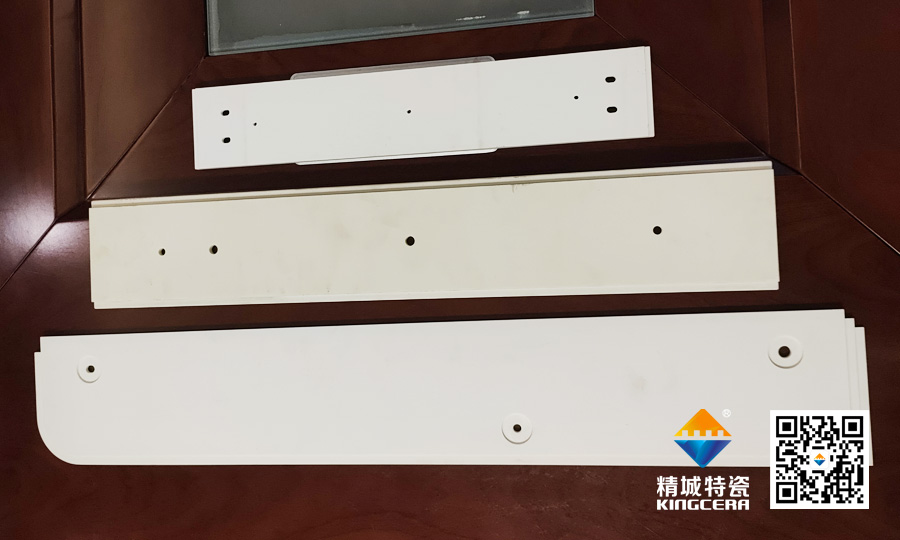 精城特瓷為某半導體設備企業定制的997高純氧化鋁大尺寸陶瓷部件,尺寸近2米×0.5米,厚度僅7毫米。產品通過等靜壓成型與精密加工實現高強度、零缺陷和微米級平整度,滿足半導體制造對超薄、高強、耐磨損材料的嚴苛需求。