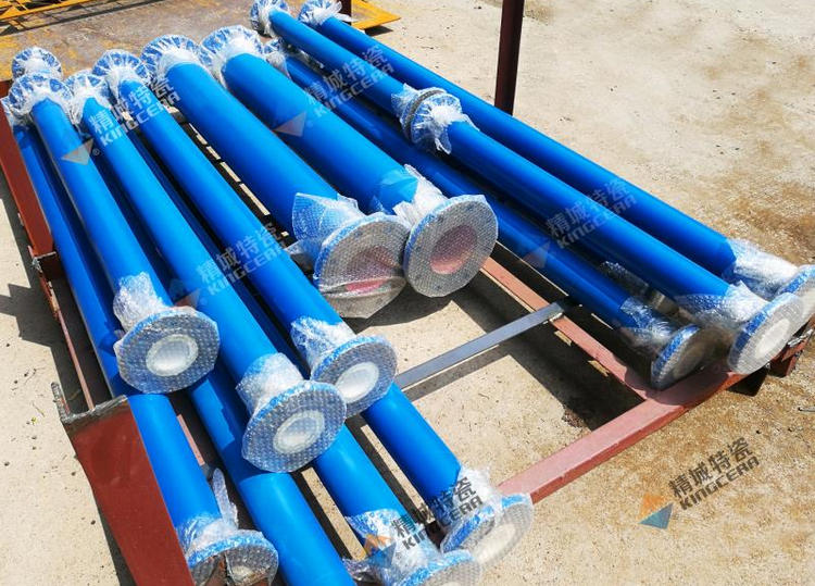 經我公司技術員結合現場運行情況,對其管線進行了仔細測繪,并及時和客戶方工程師進行了全面的技術溝通,結合我司多年防磨經驗,向客戶方提出:“將原管道改成一體成型耐磨陶瓷環管的方案,并對管線重新設計一套改造方案”。湖南精城特種陶瓷有限公司一體成型耐磨陶瓷管是將陶瓷管件整體燒制后,用特制填充料將其澆筑在鋼管內部組裝而成。該管道內壁光滑、密封性密封性好,具有良好的耐磨損、耐腐蝕、耐高溫性能。此方案得到客戶高度認可。