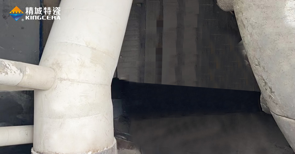以回料管為例,生料立磨研磨的物料以礦石為主,大小不一、水分含量不同、硬度差異大、結構復雜,而且還伴隨230℃左右的高溫,磨損情況復雜。而立磨回料管經常需要輸送選粉機回落下來的礦石,棱角鋒利,加上太行山地區礦石硬度高,含鐵量較大,管道內壁承受切削磨損,回料管外壁還要承受風蝕磨損和強沖擊,同樣伴隨高溫。雙重磨損之下,回料管很容易被磨穿,針對這種復雜情況,精城現場技術支持工程師當場給出了具體解決方案,不同磨損采用不同的陶瓷工藝,在盡可能節省成本的同時為客戶解決了磨損難題。