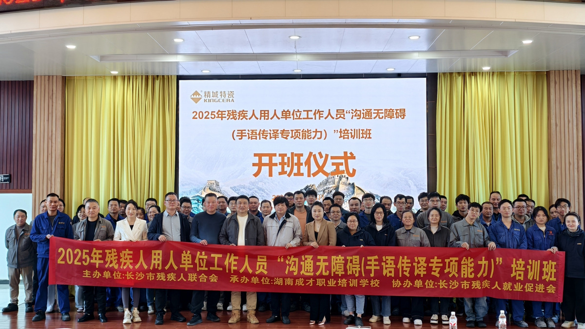 2025年殘疾人用人單位工作人員“溝通無障礙”(手語傳譯專項能力)培訓班在湖南精城特種陶瓷有限公司辦公樓五樓會議室順利舉行開班儀式。開班儀式上,湖南成才職業培訓學校校長周丹卉